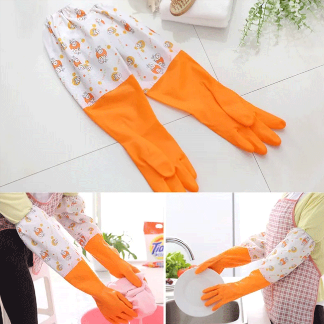 এই লম্বা, টেকসই গ্লাভসগুলো আপনার হাতের পাশাপাশি কবজি থেকে কনুই পর্যন্ত সম্পূর্ণ সুরক্ষা দেয়। কাপড় ধোয়া, বাসন মাজা, বাগান করা বা যেকোনো পরিষ্কার-পরিচ্ছন্নতার কাজে ব্যবহার করার সময় ক্ষতিকারক রাসায়নিক, গরম পানি ও ময়লা থেকে ত্বককে নিরাপদ রাখে।